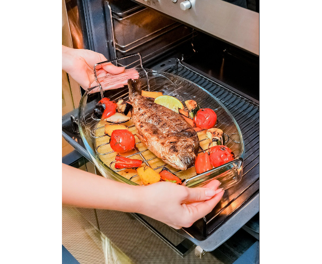 Овальная форма PYREX из жаропрочного стекла с решеткой гриль – прекрасное решение как для повседневного использования, так и для приготовления праздничных блюд. Решетка-гриль позволяет продуктам равномерно пропекаться сразу со всех сторон.