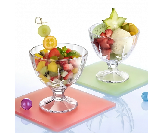 Чудесно дополнит вашу сервировку и сделает любой стол более элегантным и красивым. Креманки стеклянные, прозрачные, декоративные и подходят для любого типа десерта или мороженого. Каждая креманка имеет прочную форму, изготовленную из высококачественного стекла, что позволяет избежать стечения ваших любимых десертов. Можно использовать в СВЧ и посудомоечной машине.
