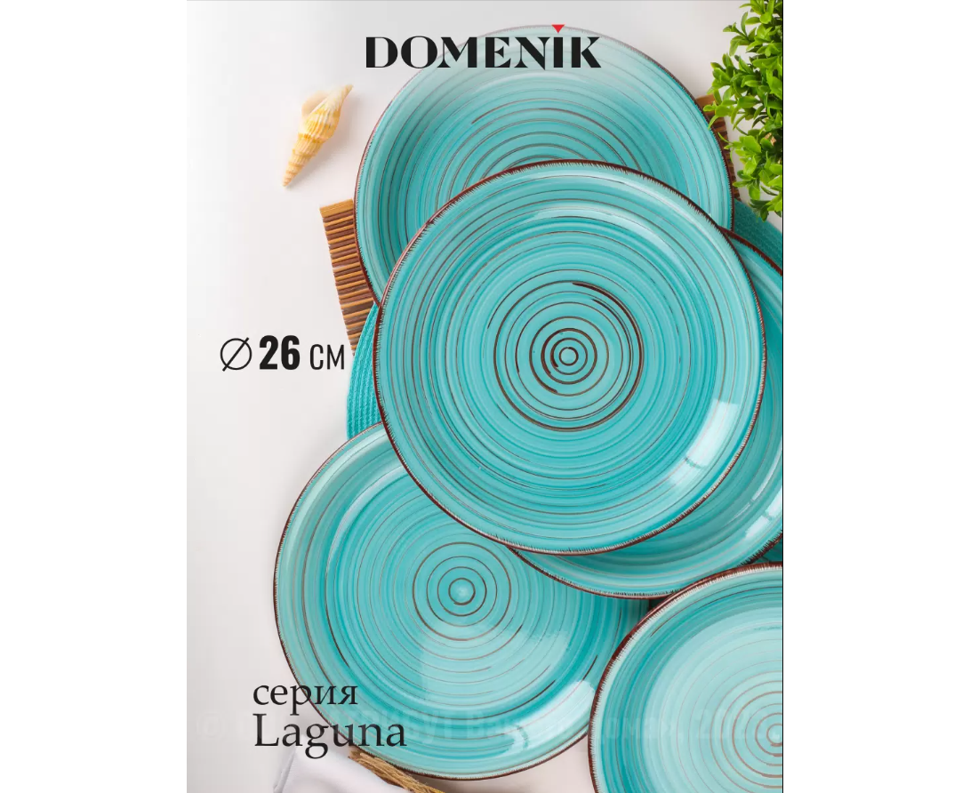 Обеденная тарелка LAGUNA диаметром 26 см выполнена из высококачественной керамики бренда Domenik.Подходит для подачи вторых блюд, десертов, фруктов и овощей.
